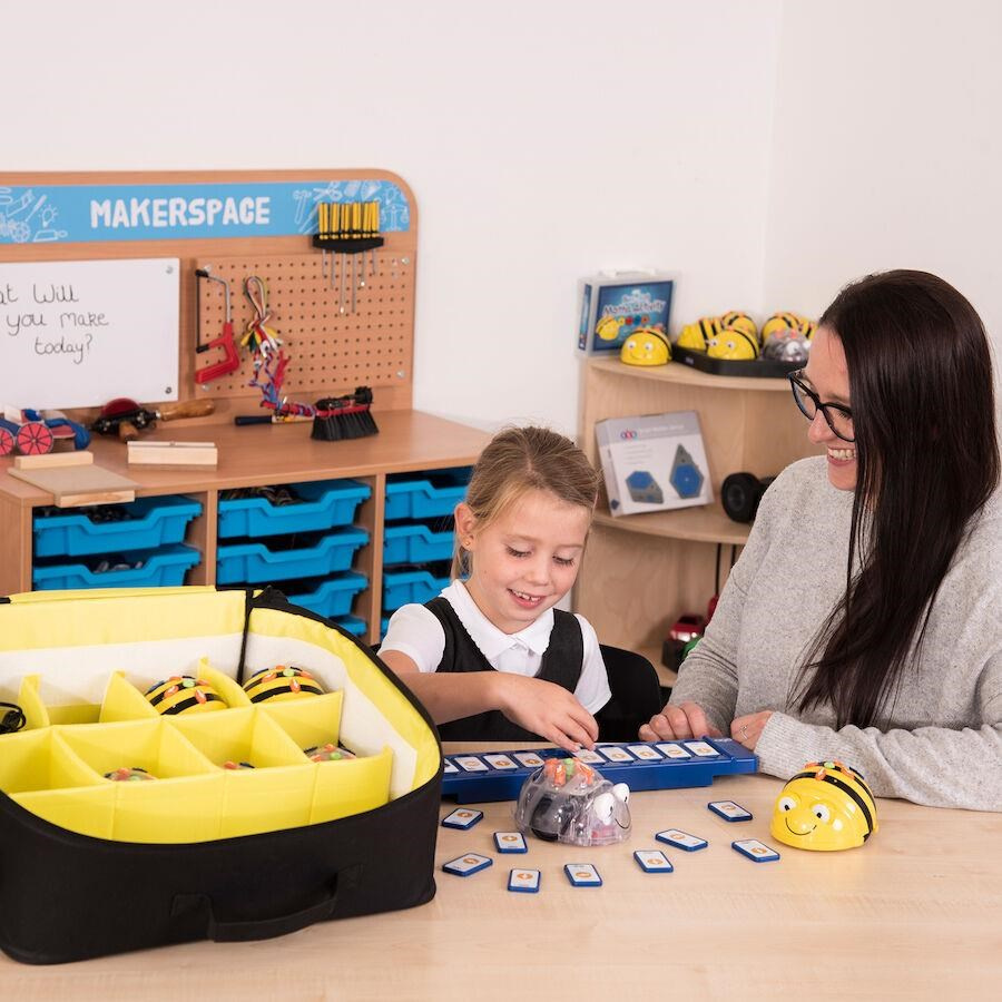 Pojme až 8 Bee-Botov alebo Blue-Botov, dokovaciu stanicu, Tactile čítačku a ďalšie drobnosti, ktoré budete potrebovať