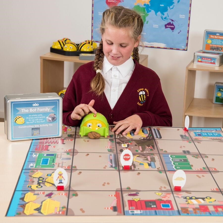 Bee-Bot podložka Stavba je pútavý vzdelávací zdroj, ktorý kombinuje zábavu so základnými vzdelávacími konceptmi v programovaní a zemepise. Deti môžu nasmerovať Bee-Bota cez rôzne terény podrobne opísané na podložke a riešiť úlohy, ktoré zlepšia ich porozumenie základnému programovaniu.