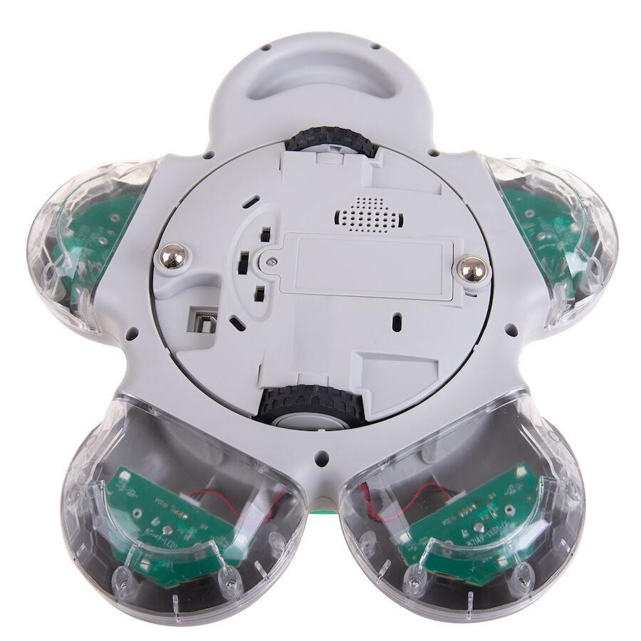 Multisenzorová interakcia: Glow and Go Bot obsahuje farebné tlačidlá, ktoré sa rozsvietia a vydávajú zvuky pri stlačení, čo podporuje interakciu a učenie detí.