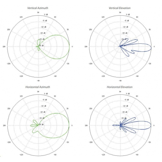 Šírka lúča 45° (H-pol) / 45° (V-pol) / 45° (elevácia)
