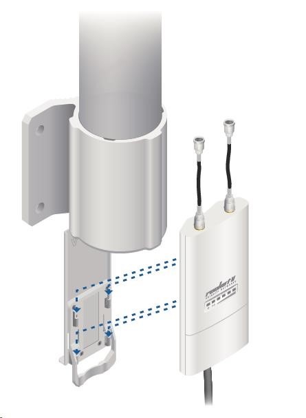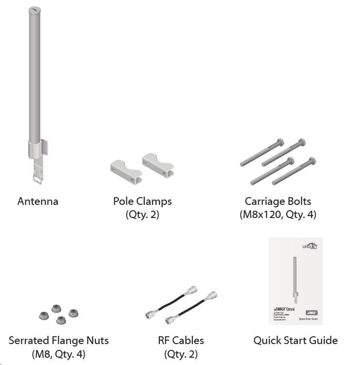 je to robustné 13dbi všesmerové anténne riešenie pre prístupové body pracujúce v pásme 2.4GHz a pomocou 802.11n v kombinácii s technológiou MIMO. Anténa má dva konektory RSMA typu žena. Súčasťou dodávky sú dva vodotesné pigtaily RSMA na pripojenie k jednotke Rocket M2, držiak pre túto jednotku a montážna súprava na stožiar, pozri. obr.