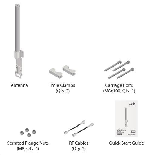 ide o robustné 13dbi všesmerové anténne riešenie pre prístupové body pracujúce v pásme 5 GHz a využívajúce štandard 802.11n v kombinácii s technológiou MIMO. Anténa má dva konektory RSMA typu žena. Súčasťou dodávky sú dva vodotesné pigtaily RSMA na pripojenie k jednotke Rocket M5, držiak pre túto jednotku a montážna súprava na stožiar, pozri. obr.