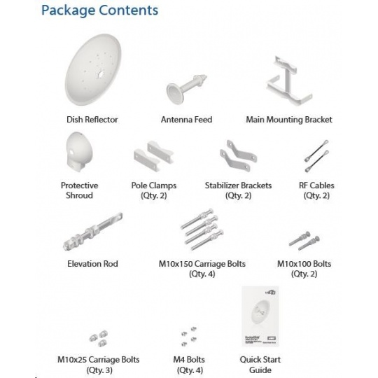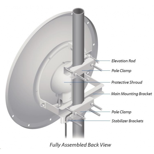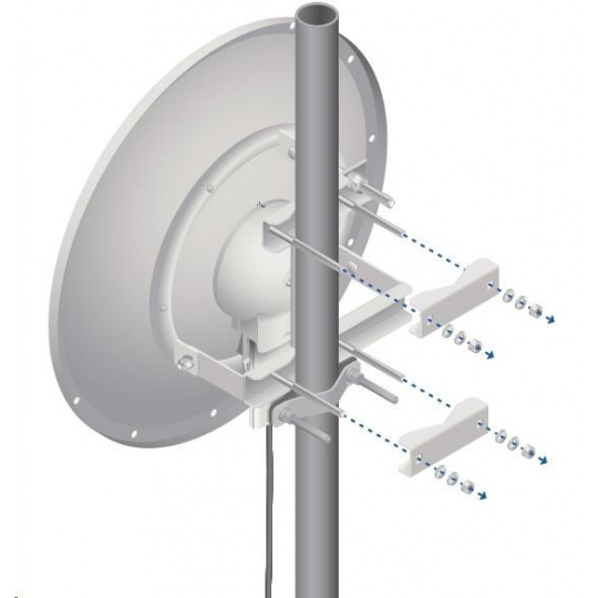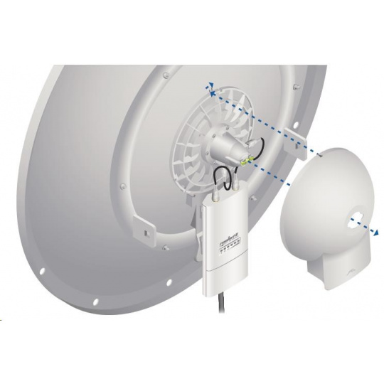 dvojpolarizačná 5GHz anténa so ziskom 30 dBi vhodná pre jednotku Rocket M5. Využíva horizontálnu aj vertikálnu polarizáciu, čím nahrádza dve samostatné antény a šetrí náklady na prenájom miesta pre anténu. Anténa je vhodná na jednoduché vytváranie spojení PtP. Dodáva sa aj s vodotesným príslušenstvom na pripojenie k jednotke Rocket M5.