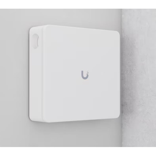 Enterprise-grade access hub with entry and exit control to eight doors and battery backup support. (8) Lock terminals (12V or Dry) (8+8) Inputs for request-to-exit devices and door position sensors (8) PoE ports for Access Readers (4) AUX terminals for chimes, sirens, or door openers (1) Battery backup input (32–48V).