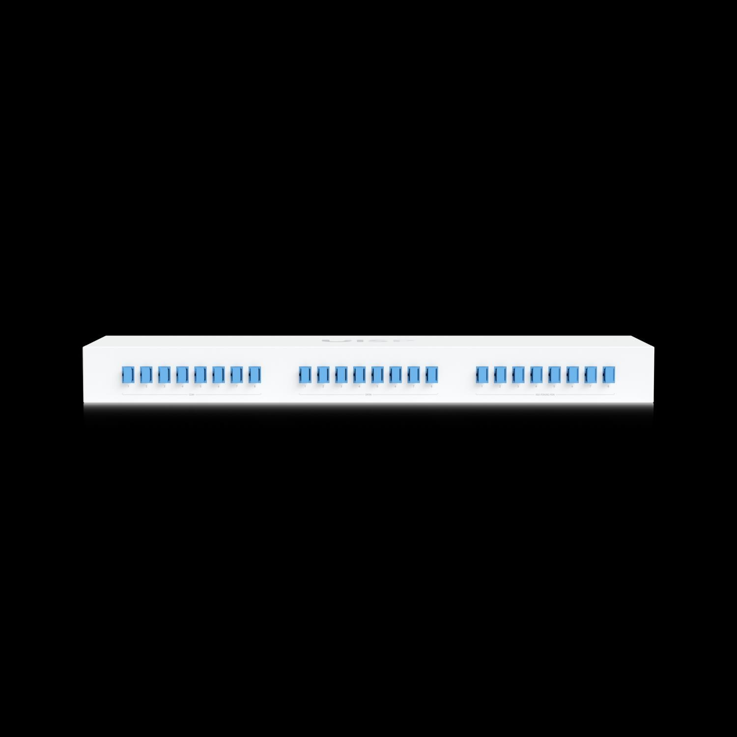 Description & Key Features UISP Fiber Coexistence WDM Filter 8 sets are integrated, professional rack-mount Technical Specifications Mechanical Dimensions 442 x 120 x 43.7 mm ( 17.4 x 4.7 x 1.7") Weight 1.8 kg (3.97 lb) Enclosure material Metal Connector type (8) COM (SC/UPC) (8) GPON (SC/UPC) (8) XGS/XG-PON (SC/UPC) Hardware GPON - COM port Wavelength range 1290—1330 nm 1480—1500 nm Max. insertion loss 1 dB Min. isolation 25 dB XGS-PON - COM port Wavelength range 1260—1280 nm 1575—1580 nm Max. insertion loss 1 dB Min. isolation 25 dB Min. return loss 50 dB Max. polarization dependentloss 0.1 dB Fiber type ITU-T G.657.A1 Single Model Fiber.