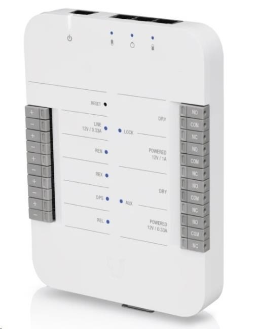 rozbočovač UniFi Access Hub je základným komponentom pri inštalácii prístupového systému UniFi. UniFi Access Hub je inteligentný jednodverový IP kontrolér, ktorý je kompatibilný s väčšinou elektrických zámkov, magnetických zámkov a rôznym 12 V príslušenstvom, ako sú pohybové senzory, tlačidlá a alarmy. Inštalácia je veľmi rýchla a jednoduchá a ponúka jednoduchú správu používateľov, návštevníkov, plánov a úrovní alebo prístupových oprávnení prostredníctvom UniFi Access Controller. Rozbočovač je napájaný prostredníctvom PoE, ktoré nie je súčasťou dodávky.