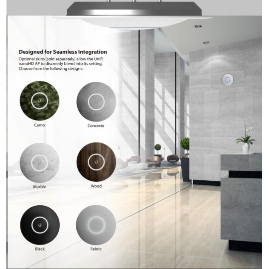 ako prvý z rodiny UniFi bude mať tento model voliteľné šasi, ktoré sa dá dokúpiť, a na výber bude celkovo 6 rôznych dizajnov - mramorový, matný čierny, betónový, drevený, látkový a vojenský maskovací.