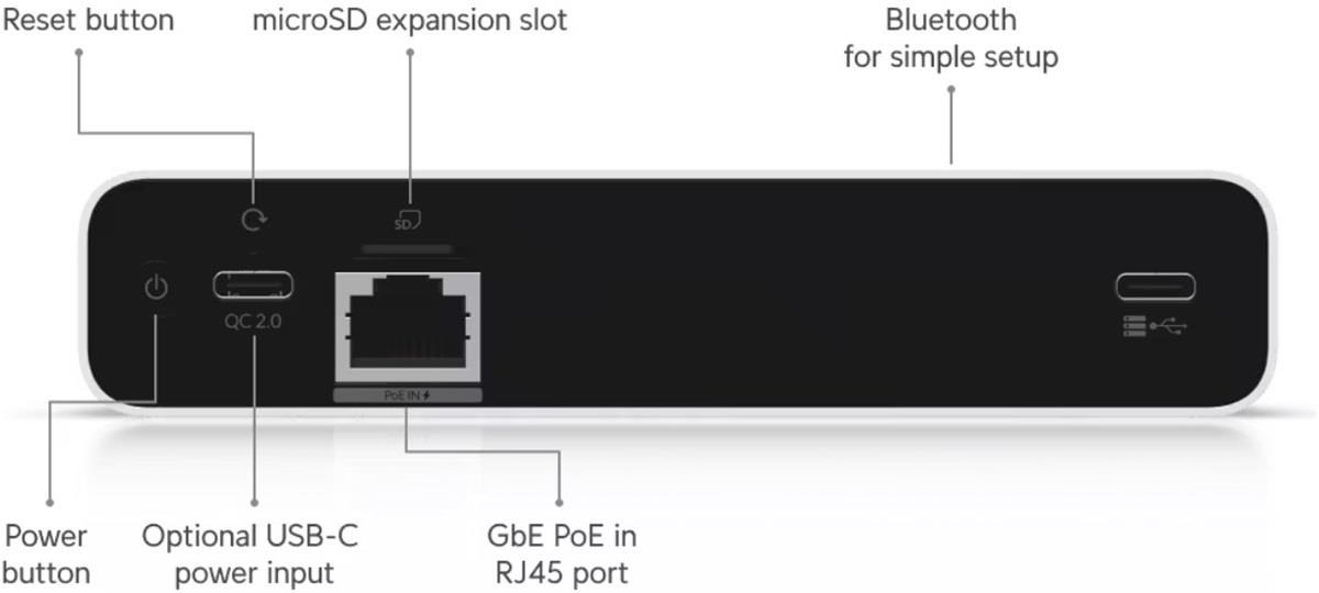 Popis produktu UniFi Cloud Key+ SSD kombinuje to nejlepší z lokální a cloudové správy zařízení. Má předinstalované UniFi aplikace (UniFi Network, UniFi Protect, UniFi Access, UniFi Connect a UniFi Talk) pro správu a nastavení UniFi produktů. Přední displej zobrazuje základní informace o vaší síti, například počet připojených AP a klientů, nebo čas poslední detekce pohybu. Podporuje Bluetooth pro rychlou konfiguraci přes mobilní aplikace. Video záznam z kamer se ukládá přímo na vestavěný 1 TB SSD, který lze vyměnit za disk s vyšší kapacitou. Cloud Key+ podporuje pouze disky, které fungují s napájením 5 V. Disky, které vyžadují dodatečné nebo vyšší napájení, nejsou podporovány. Navíc má integrovanou baterii, která při ztrátě napájení zaručí bezpečné ukončení všech běžících procesů a vypnutí zařízení. Vlastnosti • Přední displej • Zabudovaná baterie pro bezpečné vypnutí • Napájení přes PoE 802.3af (48 V injektor) nebo USB-C (9V / 2A DC adaptér) - nejsou součástí balení • Jednoduché nastavení pomocí telefonu Počet podporovaných kamer: (24) HD, (14) 2K, (8) 4K Obsah balení • Zařízení Technické parametry Konektory a rozhraní Sériový port:RJ45 Napájení Napájení přes PoE:802.3af Typ napájení:PoE, USB-C Max. spotřeba energie [W]:9,6 Napájení přes konektor/svorkovnici:9V / 2A Fyzické charakteristiky Provedení:Desktop Tlačítka:Reset, napájení Provozní teplota [°C]:0 až 35 Hmotnost [g]:560 Šířka [mm]:131 Výška [mm]:27 Hloubka [mm]:134 Hardware CPU:ARM Cortex-A53 RAM [MB]:3 Software Předinstalovaný kontroller:UniFi Protect, UniFi Network, UniFi Access.