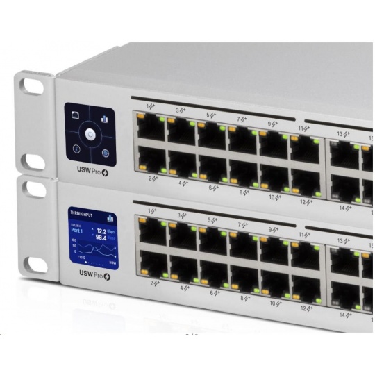 Dvojica portov 10G SFP+ so spätnou kompatibilitou s 1G SFP slúži ako Uplink. V prípade výpadku napájania alebo interného výpadku napájania možno prepínač pripojiť k záložnému systému UniFi SmartPower, ktorý môže podporovať až 6 podporovaných zariadení.
