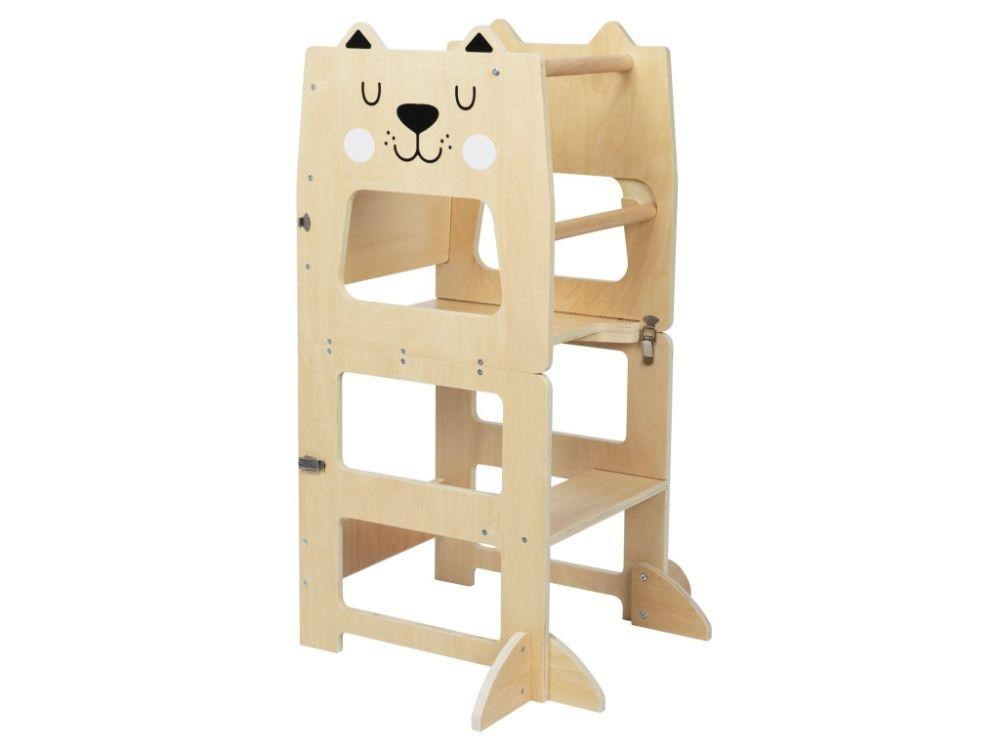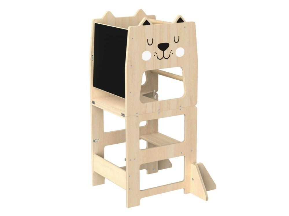 - Neutrálne farebné prevedenie - učiaaca veža vyrobená z preglejky, ošetrená transparentným vodou riediteľným lakom a farbami, je praktickým pomocníkom aj krásnym kúskom detského nábytku do domácnosti.