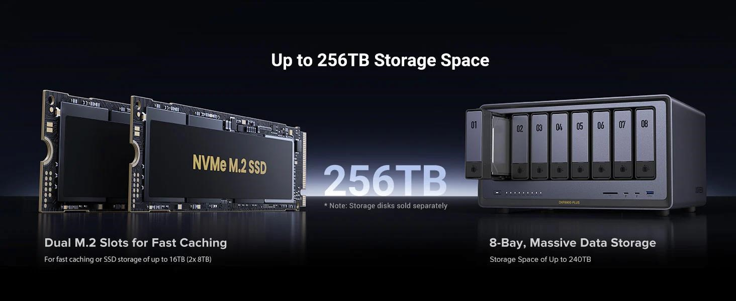 | Maximálna kapacita úložiska | 256TB (8x 30TB + 2x 8TB) |