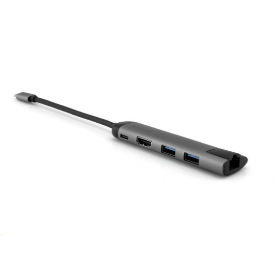 VERBATIM 49141 Multiportový USB-C HUB, 2x USB 3.0, 1x USB-C, HDMI, LAN, šedý dok
