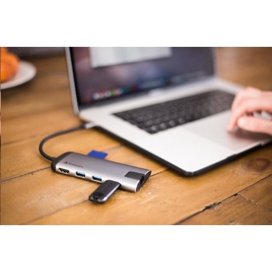 VERBATIM 49142 Multiportový HUB USB-C, 3x USB 3.0, 1x USB-C, HDMI, LAN, SD, microSD, šedý dok