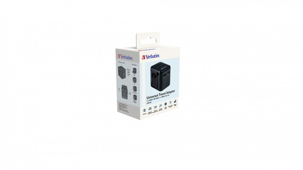 Univerzálny cestovný adaptér od spoločnosti Verbatim je možné použiť vo viac ako 180 krajinách – nech už sa vydáte kamkoľvek, vaše zariadenia nezostanú nikdy bez energie. S týmto univerzálnym adaptérom s viacerými zásuvkami sa pripojíte ku ktorémukoľvek miestnemu elektrickému zdroju. Svá elektronické zariadenia náročné na energiu, napríklad notebooky a batérie do fotoaparátov, tak dobijete kdekoľvek na svete. Porty USB-C a USB-A na spodnej strane pohodlne nabijú všetky vaše zariadenia.