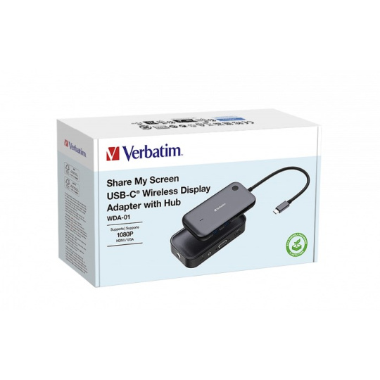 VERBATIM Display Adapter WDA-01 Share My Screen 1080P, USB-C hub