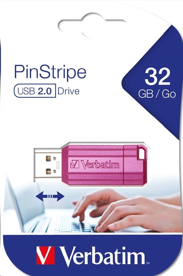 VERBATIM Flash disk 32 GB Hi-Speed Store 'n' Go, Pinstripe, USB 2.0, Horúco ružová