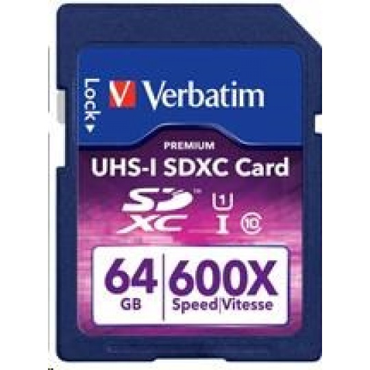 Karta VERBATIM SDXC 64GB PREMIUM, UHS-1, Class 10 (R:90/W:25 MB/s)