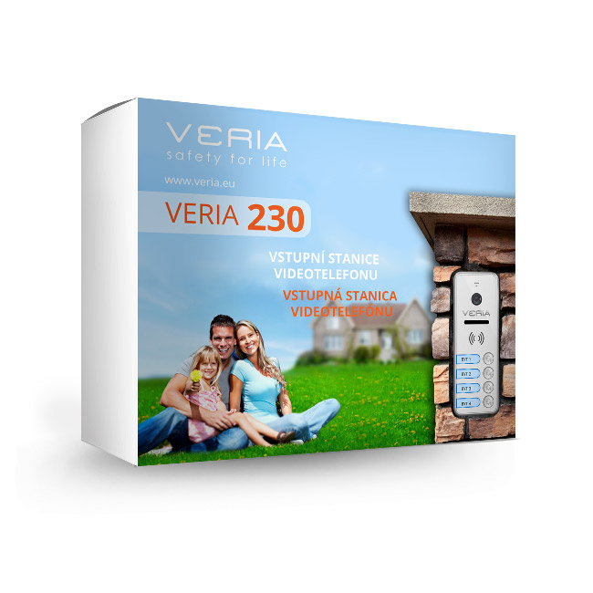 Vstupná kamerová jednotka VERIA 230Q je vybavená 2 výstupnými NO (normal open = v kľude otvorené) kontaktmi – jedným zaťažiteľným prúdom až 4 A určeným na ovládanie elektrického zámku a druhým určeným na ovládanie zariadení bez prúdovej záťaže, ako je napríklad pojezd elektrickej brány. Montáž jednotky je vďaka dodávanému spojovaciemu materiálu jednoduchá a rýchla. Jednotku je možné upevniť na rovnú plochu, alebo pod uhlom 30° s pomocou kovovej konzoly, ktorá je tiež súčasťou balenia. Vstupná kamerová jednotka VERIA 230Q je kompatibilná s monitormi VERIA 7070, VERIA 7076 a VERIA 7077.