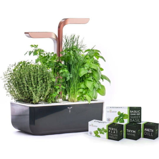 Véritable SMART - Automatický květináč s regulací osvětlení, černá měděná + 4 bylinkové náplně