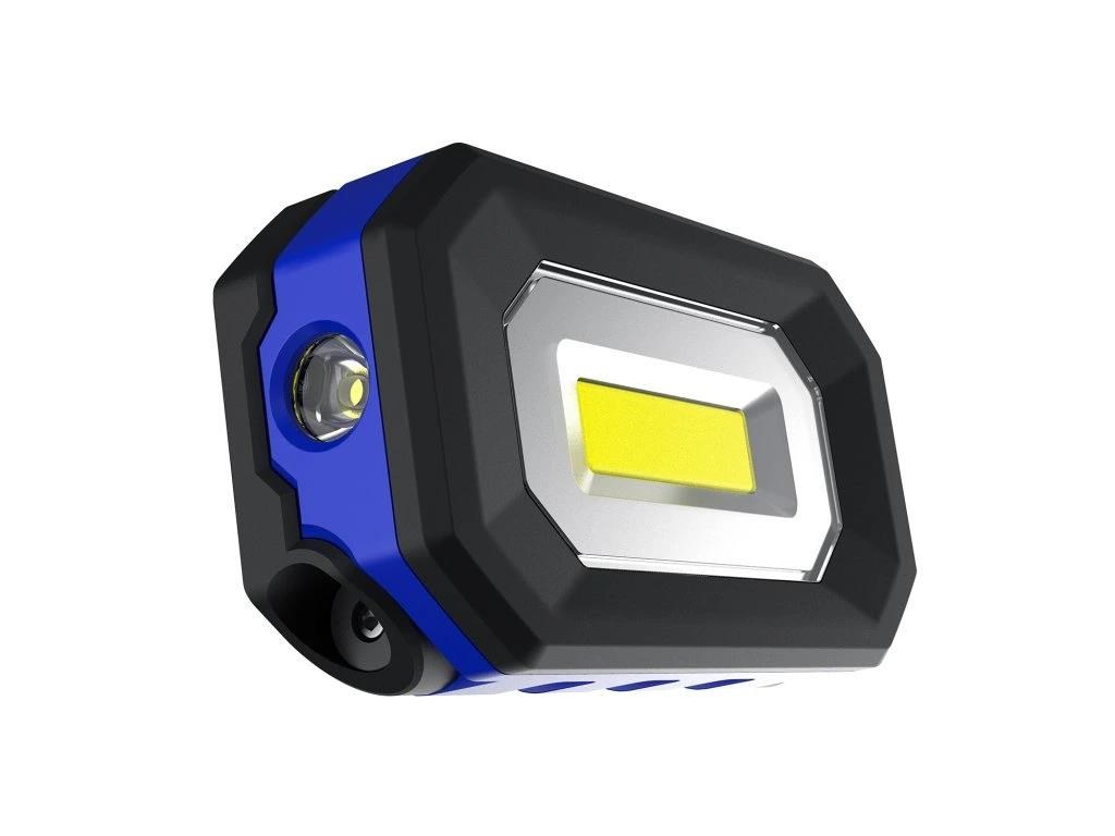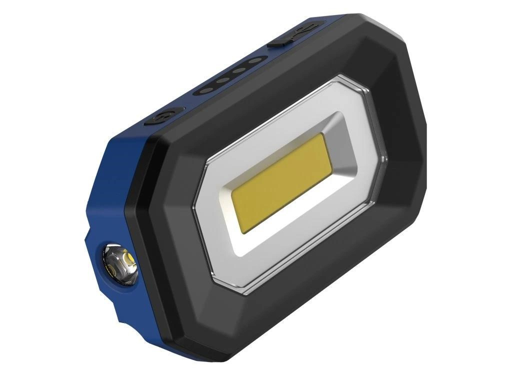 - Dve svetlá pre lepšie pokrytie: Hlavné svetlo (COB): Svietivosť až 500 lm pre intenzívne osvetlenie pracovného priestoru. Bočné kruhové svetlo (SMD): 150 lm pre menšie, prenosné osvetlenie v tesných priestoroch.