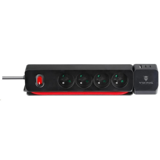 Viking síťová prodlužovací zásuvka R43S, 4x AC 230V, 1x USB-A, 2x USB-C, délka 1,4 m
