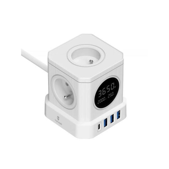 Síťový adaptér Viking ACT44 kombinuje štyri USB porty (3× USB-A a 1× USB-C), štyri AC zásuvky a 2m predlžovací kábel v jednom kompaktnom zariadení. Ušetrí miesto a umožňuje napájať až osem zariadení súčasne.