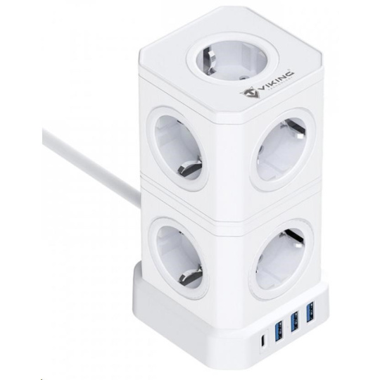 Predstavujeme Viking ACT94 - revolučnú elektrickú zásuvku, ktorá rozširuje štandardnú zásuvku o ďalších 9 x AC 230V, 3 x USB-A a 1x USB-C výstupy.