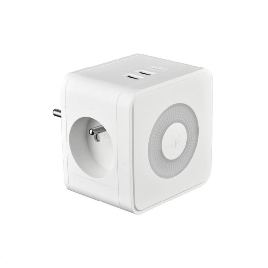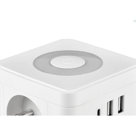 Viking síťový adaptér Y23L, 2x 230 V, 1x USB-A, 2x USB-C, dotykové světlo, bílá