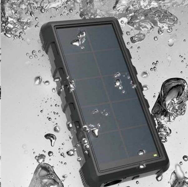 Nová solárna powerbanka so zvýšenou odolnosťou IP67 (platí len v prípade, že sú všetky vstupné a výstupné konektory zakryté napr. silikónovou ochrannou krytkou), určená pre akékoľvek outdoorové aktivity, kde potrebujete odolnejší a neobmedzený zdroj energie. Pomocou nového solárneho panelu s špičkovým výkonom 300mA, môžete túto powerbanku dobíjať kedykoľvek.