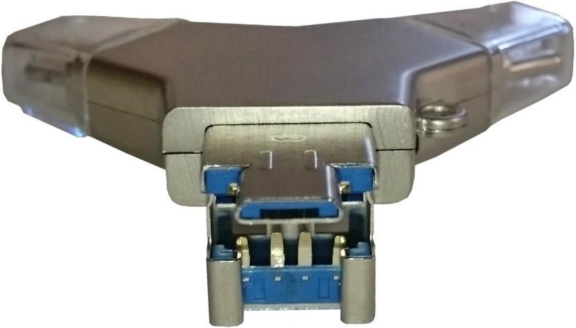 Nový, moderný a mimoriadne ľahký USB FLASH DISK 4v1 s APPLE LIGHTNING / MICRO USB / USB-C / USB 3.0 s internou pamäťou 32 GB, 64 GB, 128 GB. Ideálne na spoľahlivé zálohovanie a prenos údajov z akéhokoľvek zariadenia.