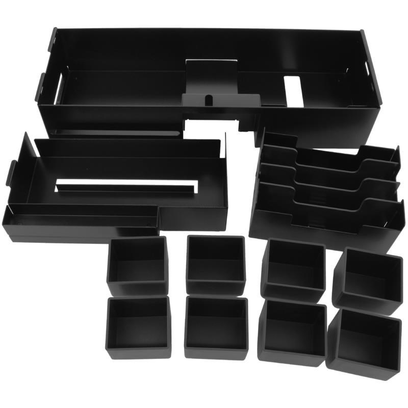 - Vy´jmateľný kovový zásobník na bankovky s plastovými oddelovačmi prihrádok
