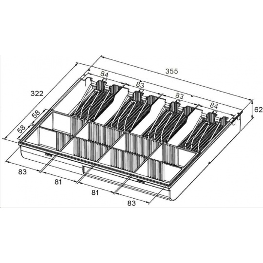 Náhradní plastový pořadač na peníze pro zásuvku S-410 - přihrádky 4 x bankovky, 8 x mince..