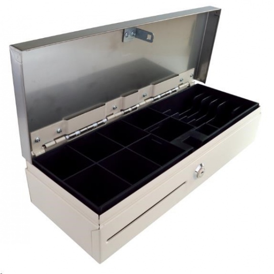Pokladničná zásuvka Virtuos Flip-top FT-460C3 - s káblom, s uzamykateľným krytom, veko NEREZ, biela