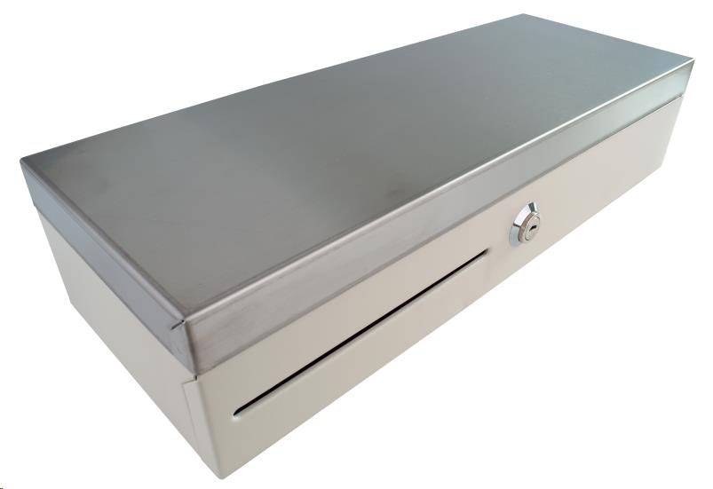 Pokladničná zásuvka Virtuos Flip-top FT-460C3 - s káblom, s uzamykateľným krytom, veko NEREZ, biela