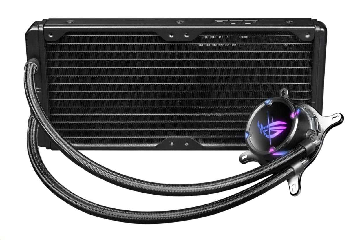 | Obsah balenia | 1 x kvapalinový chladič (vopred nanesená tepelná zmes) 1 x balenie príslušenstva so skrutkami a držiakmi 2 x 140 mm ARGB ventilátor chladiča 1 x USB kábel na ovládanie softvéru 1 x kábel rozdeľovača ventilátorov 1:2 1 x kábel rozdeľovača ventilátorov 1:4 ARGB 1 x stručná príručka 1 x nálepka ROG |