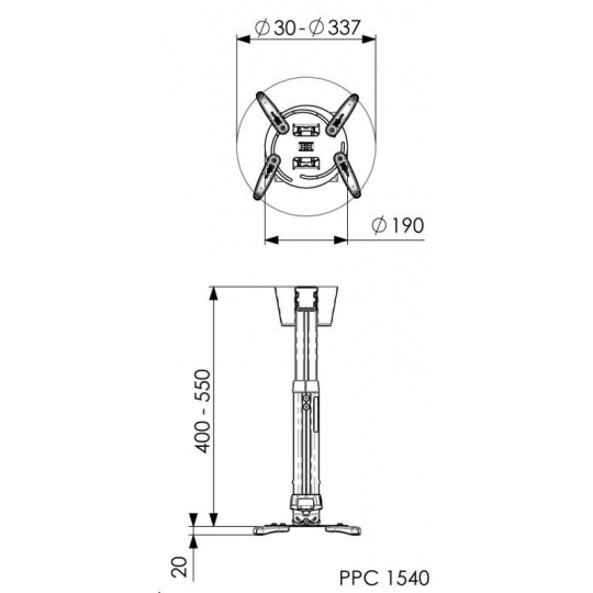 Teleskopický držiak stropného projektora do 20 kg