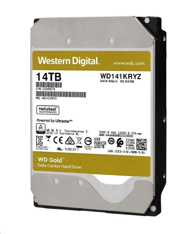 WD GOLD WD141KRYZ 14TB SATA/ 6Gb/s 512MB cache 7200 otáčok za minútu, CMR, Enterprise