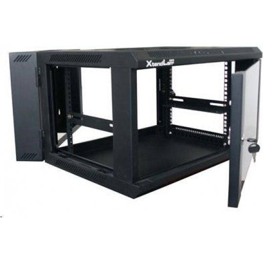 XtendLan 19" dvoudílný nástěnný rozvaděč 9U 600x550, nosnost 60 kg, skleněné dveře, svařovaný,černý