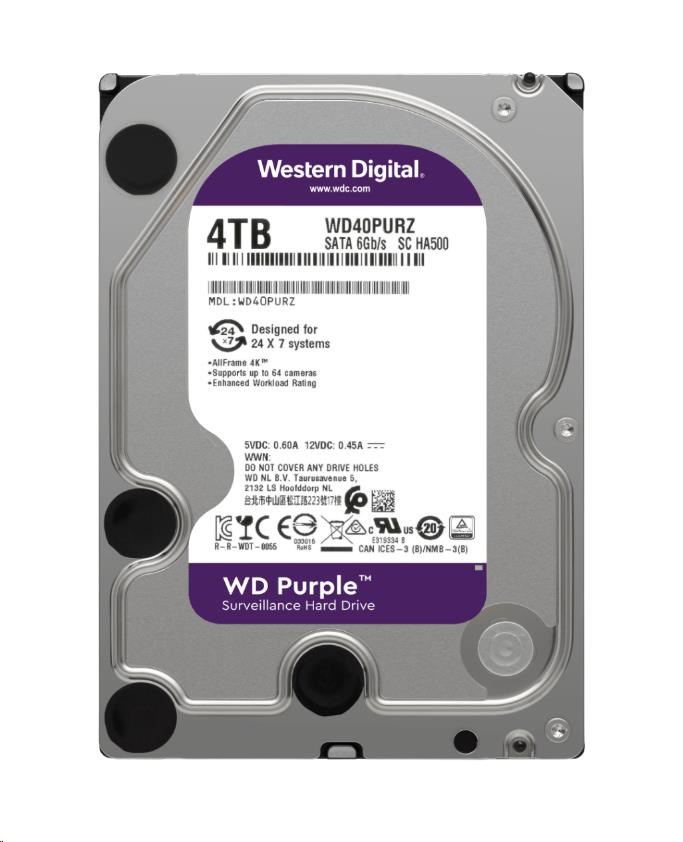 WD PURPLE WD42PURZ 4TB SATA/600 256MB cache, nízka hlučnosť, CMR