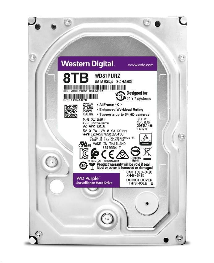 WD PURPLE WD85PURZ 8TB, SATA III 3.5", 256MB 5640RPM, 215MB/s, Low Noise, CMR