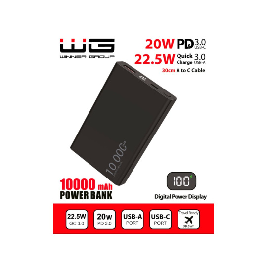 WG - Power Bank 10000 mAh, USB-C PD 20W + USB-A 22.5W, černá