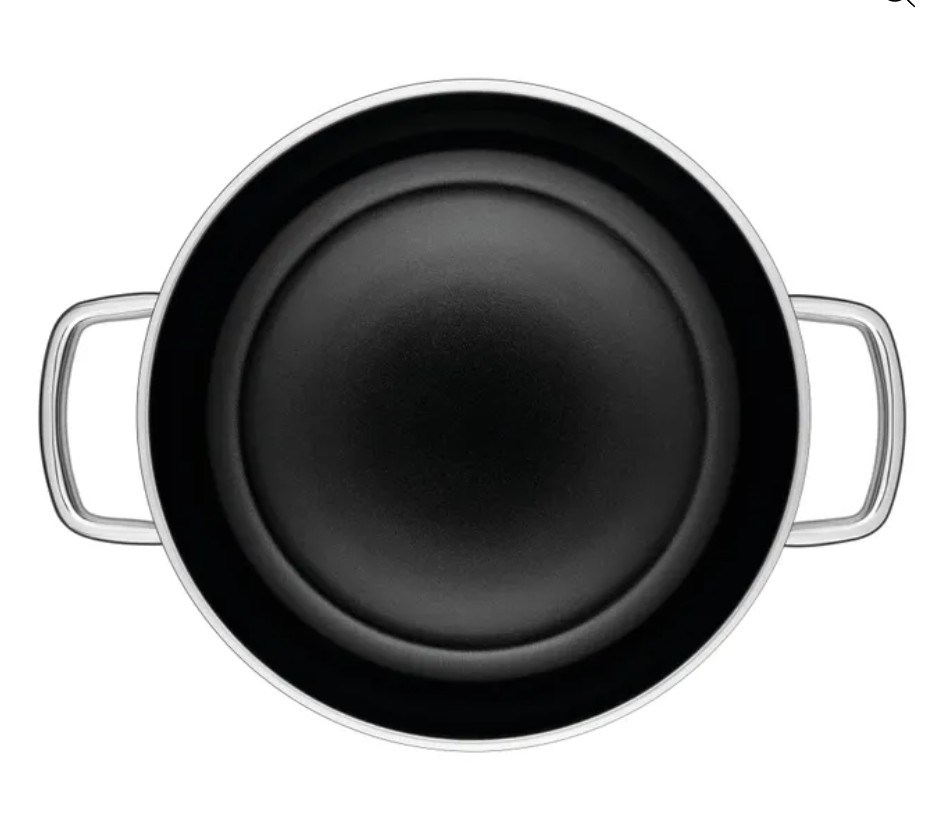 - Materiál Cromargan®: Telo panvice je vyrobené z leštenej nerezovej ocele 18/10, ktorá je extrémne odolná a chuťovo neutrálna.