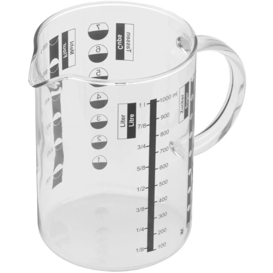 - Presná stupnica: Prehľadné značenie v litroch a mililitroch zaisťuje jednoduché a rýchle dávkovanie surovín.