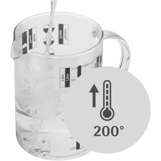 - Ergonomické ucho: Robustná rukoväť poskytuje stabilitu a bezpečný úchop aj pri plnej odmerke.