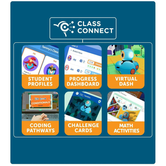 Wonder Pack obsahuje všetok hardvér a softvér, ktorý potrebujete na to, aby ste deťom v triedach sprístupnili programovanie! Toto balenie obsahuje Sketch Kit, ktorý z robota Dashe urobí kresliaci nástroj. Súčasťou je tiež Launcher, Gripper Building Kit a dvojica LEGO konektorov – ideálny spôsob, ako získať kompletnú sadu príslušenstva! Súčasťou tohto balenia je aj ročná licencia na Class Connect pre 2 študentov. Vďaka platforme Class Connect majú žiaci k dispozícii rozsiahle zásoby lekcií, aktivít a hádankových úloh, ktoré môžu plniť v aplikácii Blockly a naučiť sa tak dôležité zručnosti v oblasti programovania a aplikovať ich na reálne príbehové výzvy. Obsah balenia: Dash robot Sketch Kit Launcher Gripper Building Kit Building Brick Connectors