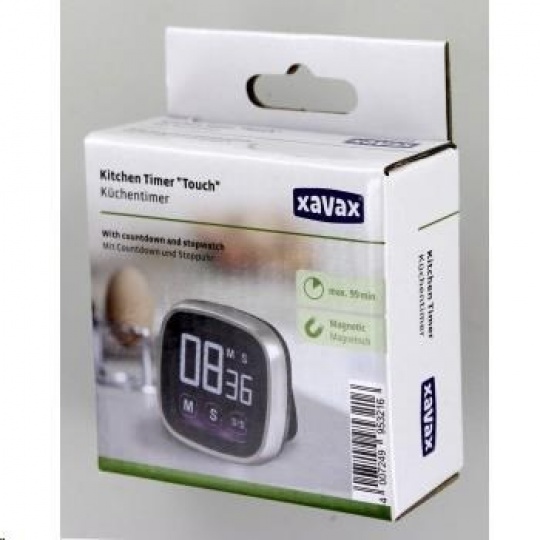 - digitálna minútka so štýlovým dizajnom - nastavovanie času pomocou 3 dotykových tlačidiel (až do 99 minút a 59 sekúnd) - funkcia stôpiek a odpočítavania - tlačidlo Start / Stop - hlasitý zvukový signál - veľký 4-číslicový displej (XX:XX) - podsvietenie - možnosť postaviť na vodorovnú plochu pomocou stojánka alebo pripevniť na kovové magnetické povrchy pomocou magnetu - rozmery (V x D x Š): 7,2 x 7,2 x 2,4 cm - napájanie: 2x Micro AAA (súčasť balenia) - farba: čierna / strieborná