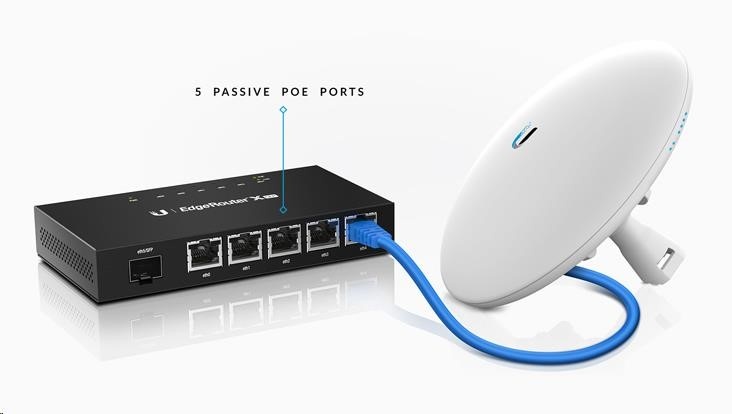 UBNT EdgeMAX EdgeRouter X SFP [880MHz dvojjadrový procesor, 256MB RAM, EdgeOS, 5 gigabitových portov s PoE, SFP]