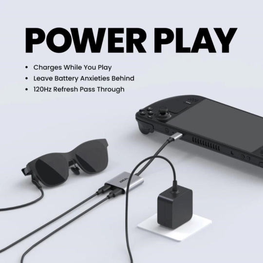 Power Play: Zvýšte výkon svojich herných relácií a streamovania pri používaní okuliarov XREAL AR. Nabíjajte a hrajte, aby vaše herné dobrodružstvo už nikdy nenarušila vybité batéria.