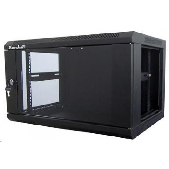 XtendLan 19" nástěnný rozvaděč 12U 600x450, nosnost 60 kg, skleněné kouřové dveře, rozložený, černý