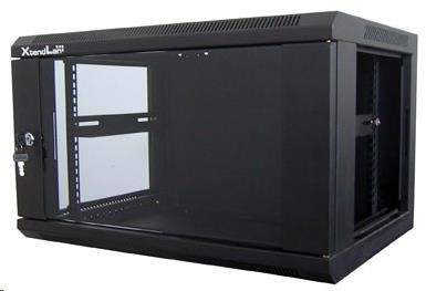 XtendLan 19" nástěnný rozvaděč 6U 600x450, nosnost 60 kg, skleněné kouřové dveře, svařovaný, černý